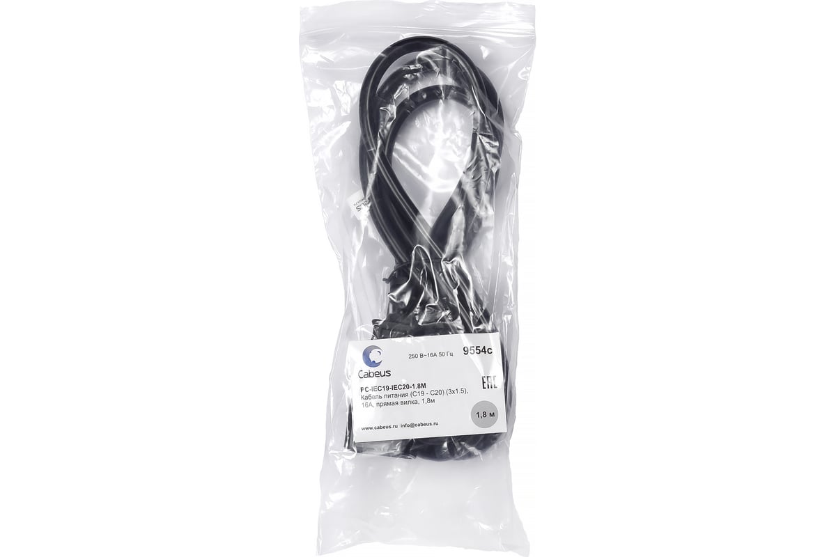 Кабель питания Cabeus IEC 320 C19 - IEC 320 C20 (3x1.5), 16A, прямая вилка, 1.8м PC-IEC19-IEC20-1.8M