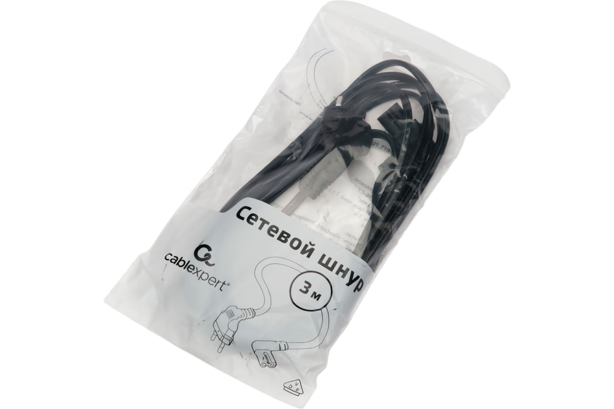 Кабель питания Cablexpert CEE 7/16-C7, 2x0.75мм2, 2.5А, VDE, угловыеразъемы, 3м, черный, пакет, PC-184A-VDE-3M