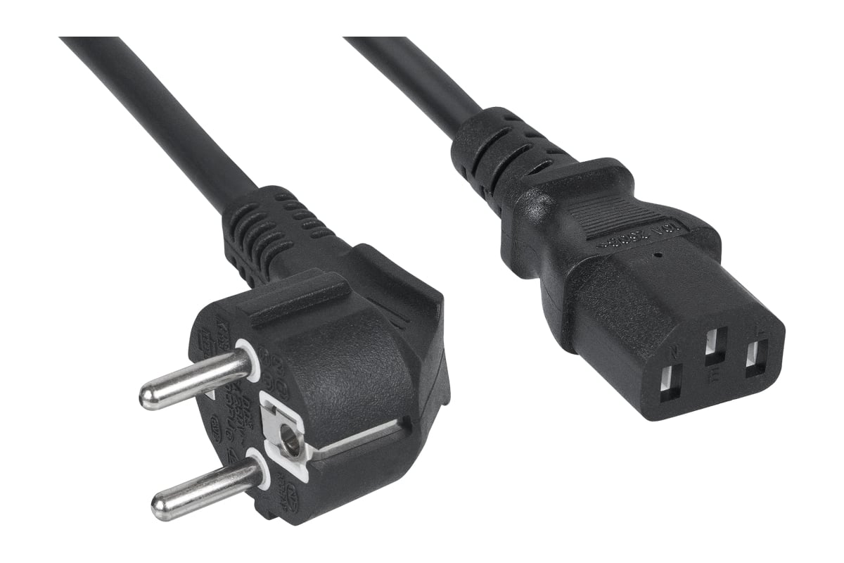 На одном конце кабеля вилка СЕЕ 7/7 (Schuko), с другой стороны ‒ разъем IEC 320 C13.