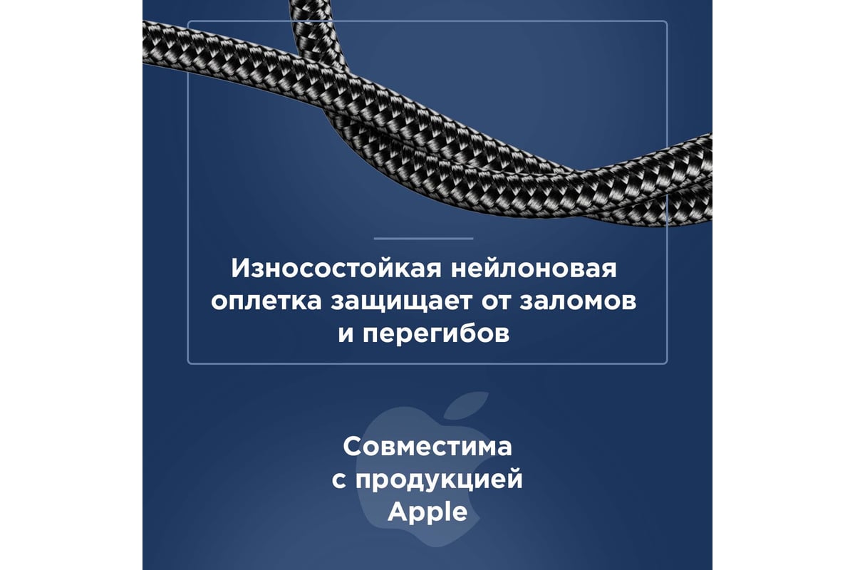 Длина кабеля равна 1 м, что позволяет заряжать устройство и передавать данные на комфортном расстоянии для пользователя.