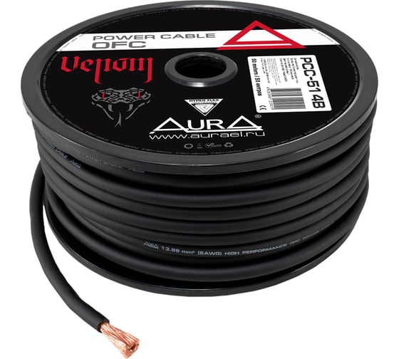 Кабель силовой AURA OFC, 6AWG/13,85мм2, 50м/катушка, черный PCC-514B