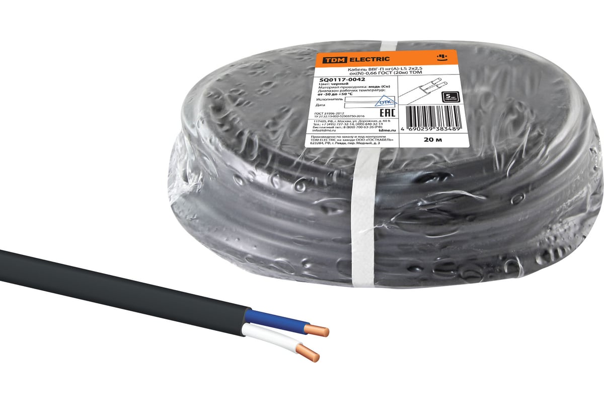 Вопросы и ответы о кабеле TDM ELECTRIC ВВГ-П нгА-LS 2х2,5 окN-0,66 ГОСТ 20м SQ0117-0042