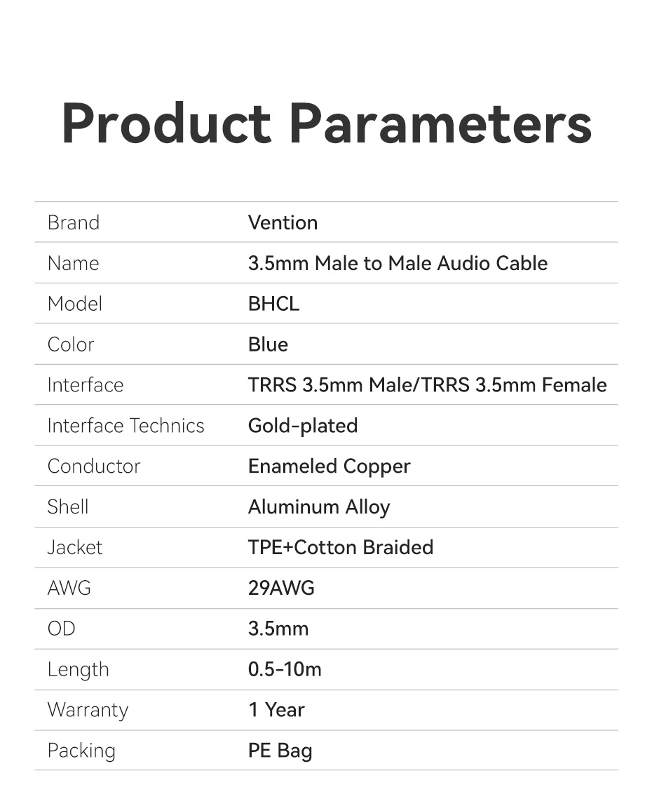 Кабель-удлинитель VENTION аудио Jack 3,5 mm M/Jack 3,5 mm F - 1 м BHCLF