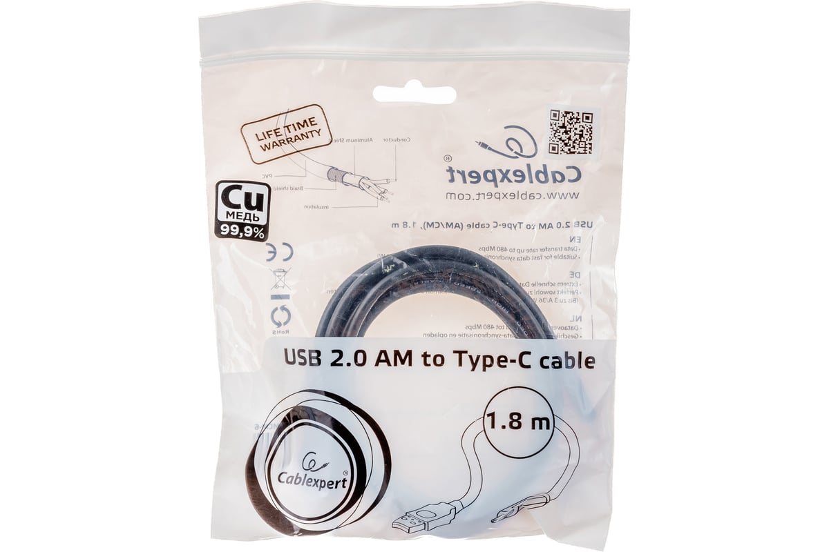 Вопросы и ответы о кабеле Cablexpert USB2.0 AM/USB Type-C, 1.8м CCP-USB2-AMCM-6