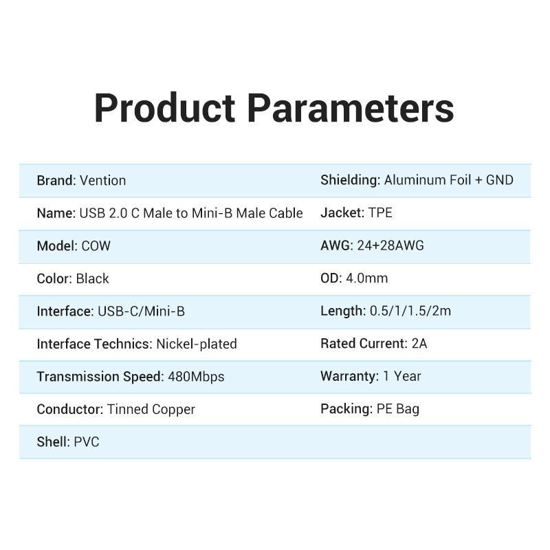 - Тип разъема: USB Type C M / USB 2.0 mini B 5pin M