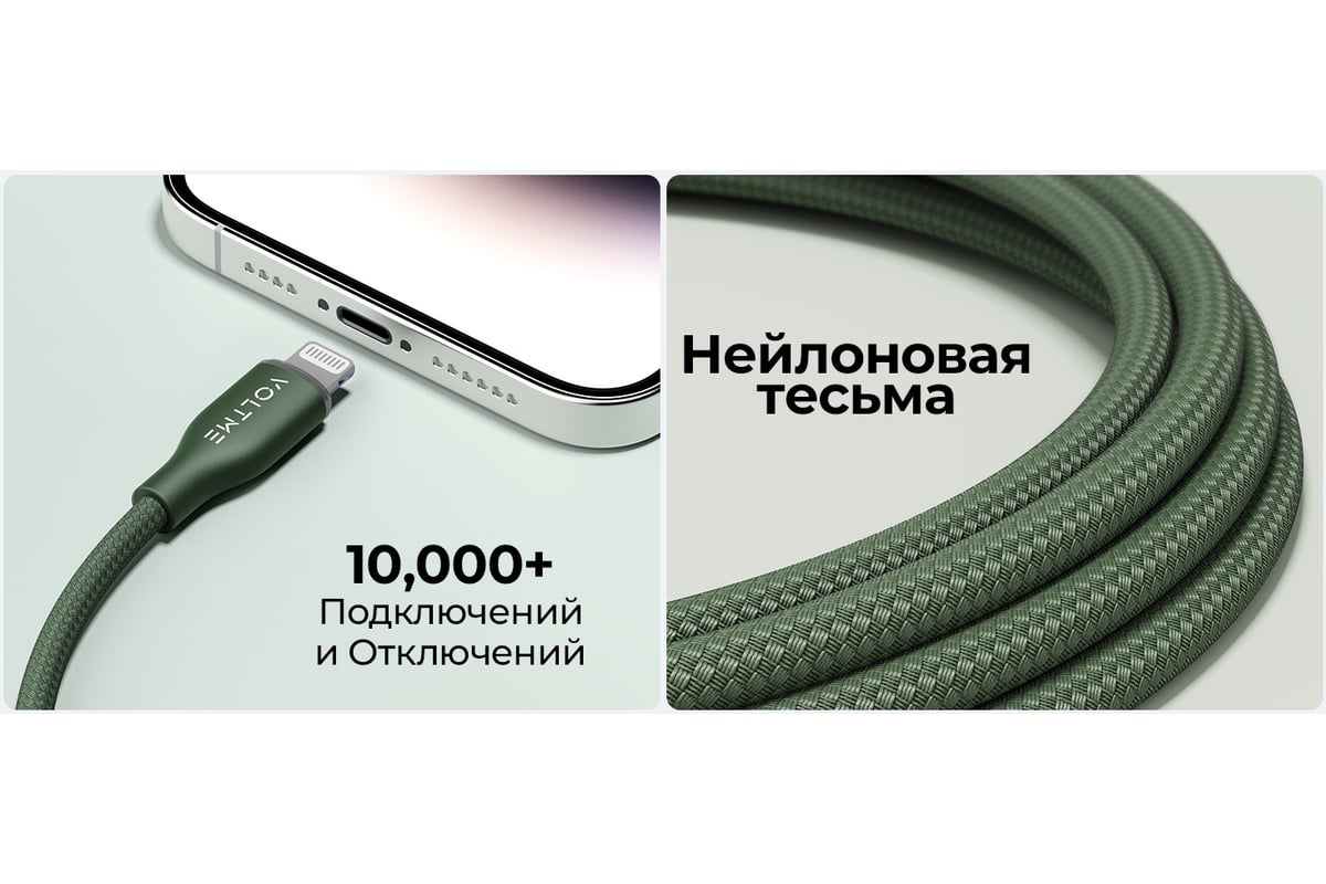 Кабель VOLTME USB2.0 Powerlink Rugg CTL 3A, Lightning- USB-C, 1.2м, зеленый, C2081