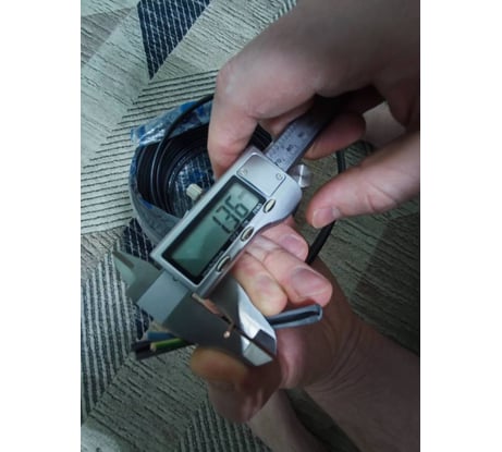 Когда-то написал первый отзыв к этому кабелю (05.04.2021), прошло время и до сих пор приобретаю кабель данного производителя. Хоть и по п.2.2 ГОСТ 22483-2021 номинальное сечение не подлежит проверке прямым измерением, некоторую оценку всё же можно получить с некоторыми допусками. По п.5.1.2 в таблице 3 ГОСТ 22483-2021, электрическое сопротивление 1,5мм2 жилы при 20 град целься не должно превышать 12,1 Ом на длине в 1 километр. В 1913 году международная электротехническая комиссия (IEC) установила сопротивление отожжённой меди 0,017241 Ом*мм²/м при 20°С или 17,24 Ом*мм²/км. Соответственно геометрическое сечение жилы при условии изготовления из отожжённой меди должно быть не менее 1,425 мм2. При измерении микрометром получен диаметр 1,36 мм, что соответствует геометрическому сечению 1,452 мм2. Вывод: заключение о соответствии ГОСТу нужно всё же делать через измерения сопротивления и пользоваться соответствующим инструментом, но при некотором допуске можно оценить что кабель соответствует допуску по номинальному сечению.