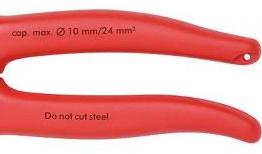 - Для резки алюминиевых, медных, одножильных и многожильных кабелей диаметром 10 мм и сечением 24 кв. мм;