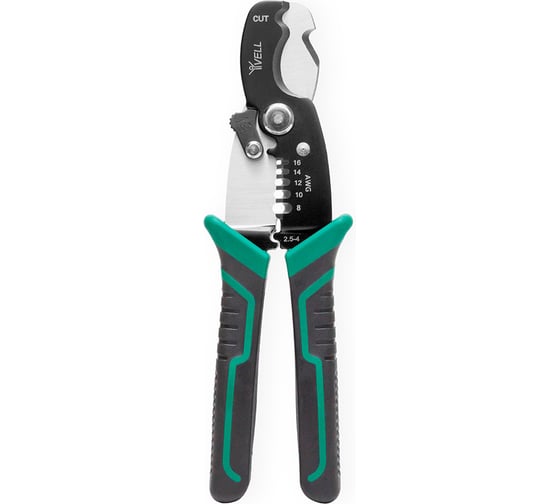 Многофункциональный кабелерез от компании Vell V90349используется для выполнения электромонтажных работ с проводами, а также подходит для снятияизоляции и резки медных и алюминиевых кабелей. Изделие имеет рукоятки, выполненные из материала термопластичная резина, который способен препятствовать проскальзыванию инструмента во время работы. Имеется несколько зон резки для кабеля разного диаметра, которые облегчают резку без заломов и повреждений сердечника. Острая и износостойкая режущая кромка, способна обеспечить длительный срок использования инструмента. Для удобства хранения предусмотрен фиксатор.