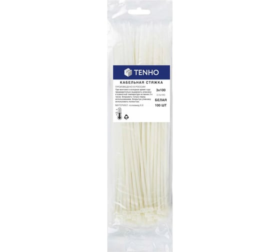 Кабельная хомут-стяжка TENHO 3х100 (2,5х100) полиамид, белая 100 штук Р00080001