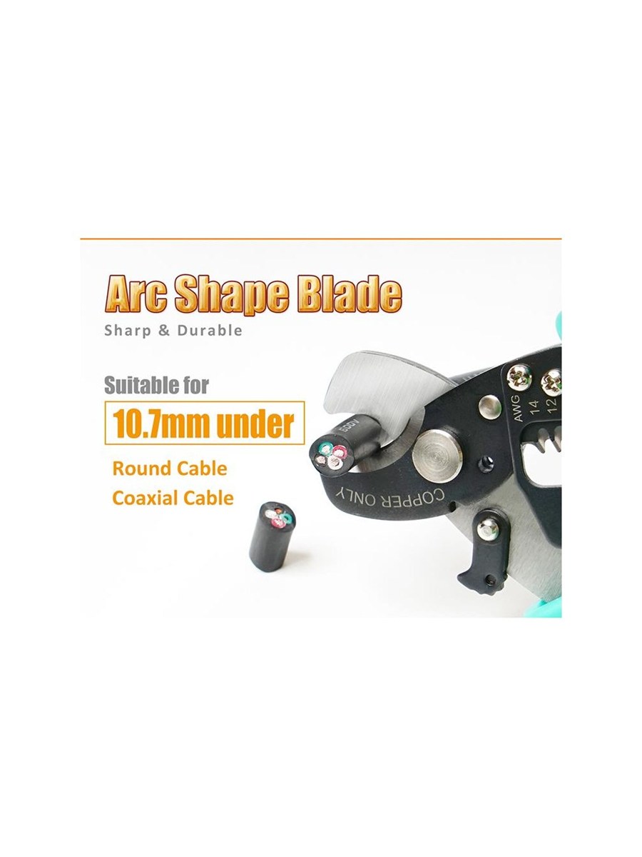 Резка круглого кабеля диаметром до 10.7 мм.