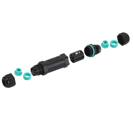 Купил этот коннектор чтобы соединить новый кабель с коротко обрезанным кабелем дренажного насоса Макита. Концы на обоих кабелях разделал и каждую жилу загильзовал, дополнительно посадил термоусадку. Далее все завел в соединитель коннектора и закрутил. Насос все это время в воде, в пруду, качает, замыканий нет. В коннекторе два силиконовых уплотнителя - один меньшего диаметра, другой больше. Большего диаметра подходит на трехжильный кабель диаметром максимум 10 мм. У меня был 9 мм и заходил довольно туго. Чтобы не порвать манжету я мыльной водой кабель смочил, так он легче прошел.