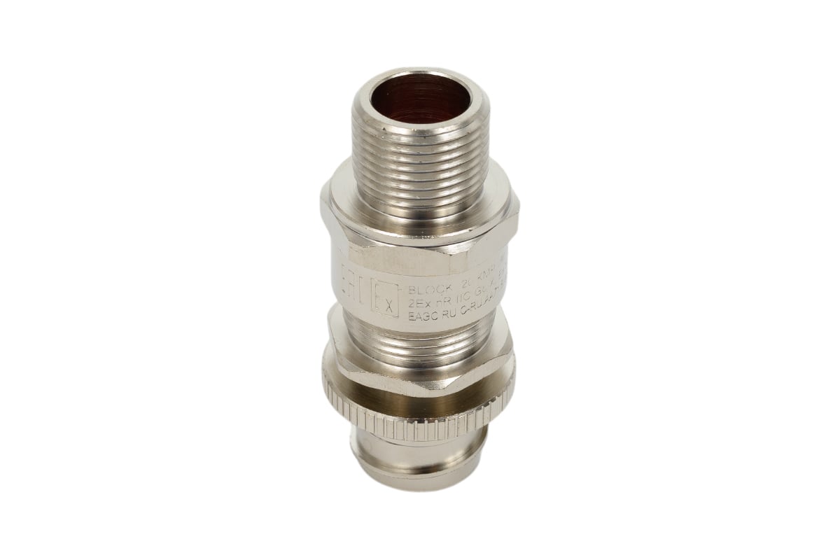 Кабельный ввод ООО "БЛОК" BLOCK 20 KMP (никелированная латунь) под небронированный кабель 6,5 - 13,9 мм в металлорукаве Ду20 мм, М20x1,5 6g, 1Ex e IIC Gb X / 1Ex db IIC Gb X / 2Ex nR IIC Gc X / Ex ta IIIC Da X, IP66/67/68 20 KMP 080 Ni