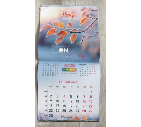 Календарь удобный, листы легко переворачиваются, дизайн стильный. Хорошо подходит для офиса.
