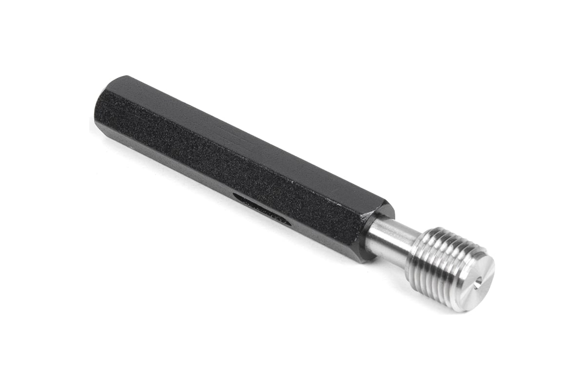 Резьбовая метрическая проходная рабочая калибр-пробка. Применяется в машиностроении, приборостроении и других производственных сферах для контроля параметров внутренней метрической резьбы. Пробка должна свободно вкручиваться в контролируемую резьбу. Соответствует ГОСТ 24997-2004, конструкция и основные размеры выполнены по ГОСТ 17756-72.