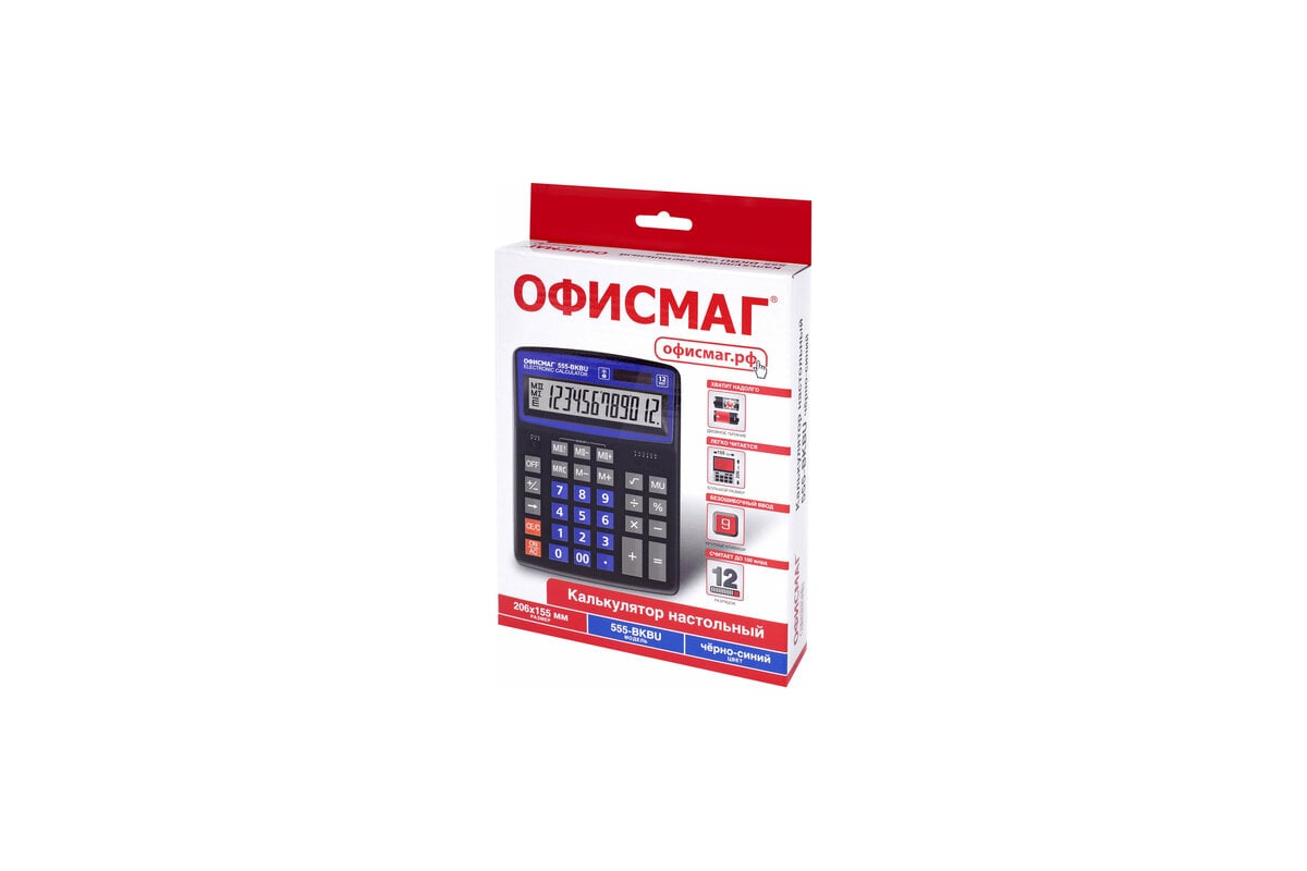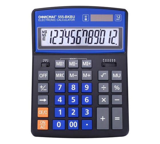Калькулятор настольный ОФИСМАГ 555-BKBU 206x155 мм, 12 разрядов, двойное питание, черно-синий 271927