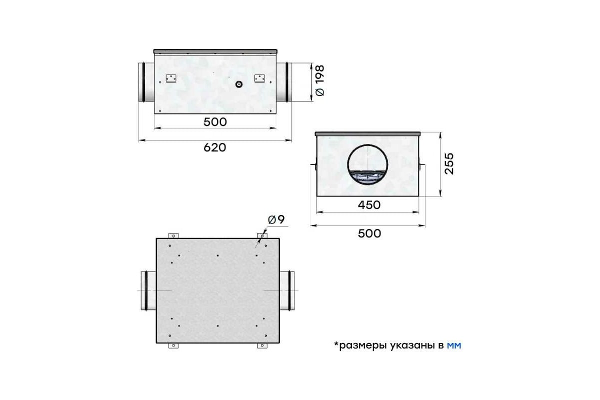 Подходит для воздуховодов круглой формы диаметром 200 мм. Расход воздуха способен достичь 925 м3/час. Максимальное давление 495 Па. Подключается к сети с напряжением 220В.