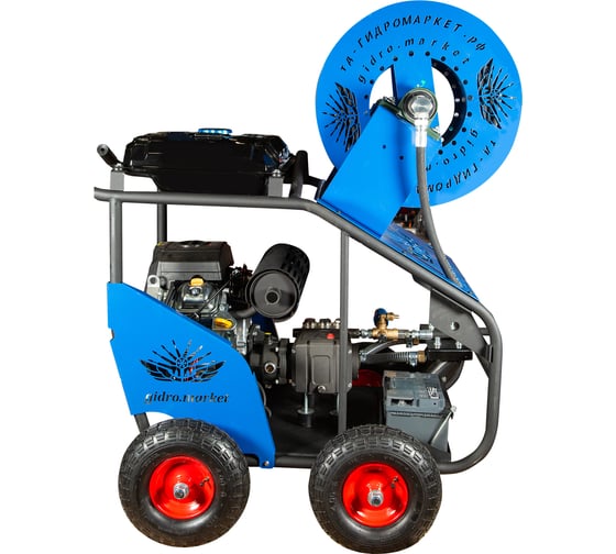 Каналопромывочная высоконапорная установка мобильная с барабаном ТД Гидромаркет GM Pumps 150-200 бар 50-65 л/мин вер Pipe GMG-30-200-50-4whL-Reel90