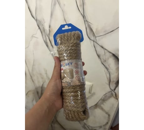 Канат джутовый Turbosky имеет диаметр 8мм и длину 15метров. Товар сертифицирован. Срок службы не ограничен.