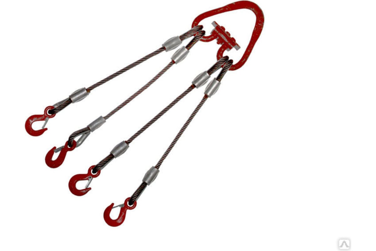 Канатный четырехветвевой стальной строп КанТраст 4СК 2,5/4000 (опрессовка) 4SKO254000 представляет собой надежное грузозахватное приспособление, состоящее из четырех стальных тросов, звена соответствующей грузоподъемности, чалочных крюков на концах для надежного удержания груза.