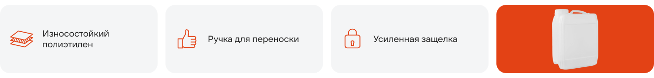 Канистра п/э 5 л. натуральная штабелируемая с пробкой Gigant GZIP-03 оснащена крепкой ручкой для удобства перемещения, а так же винтовой крышкой, которая герметично закрывает канистру, исключая протекание.