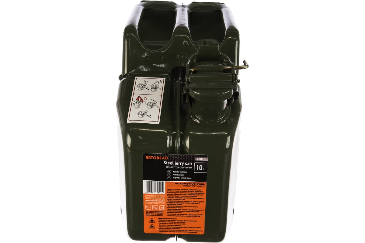 Канистра стальная усиленная, крышка с фиксатором 10 л для ГСМ АвтоDело 42810 15619