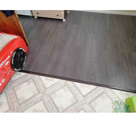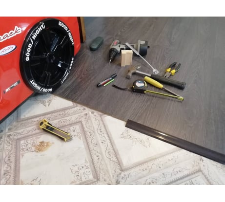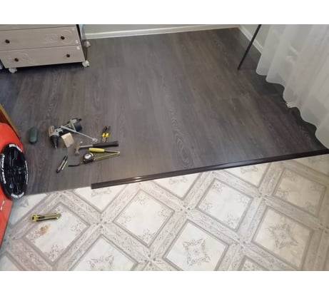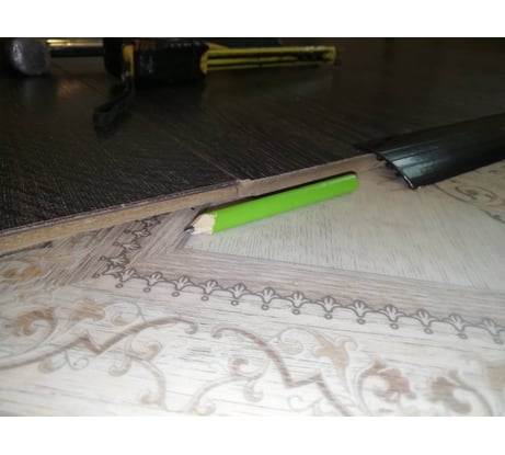 просверлил в полу отверстия через каждые 17см. сверлом ф6мм, забил туда пластиковые штучки из комплекта, поставил в пазы порока саморезы их комплекта, установил, выровнял и забил молотком через брусокч вроде держится..