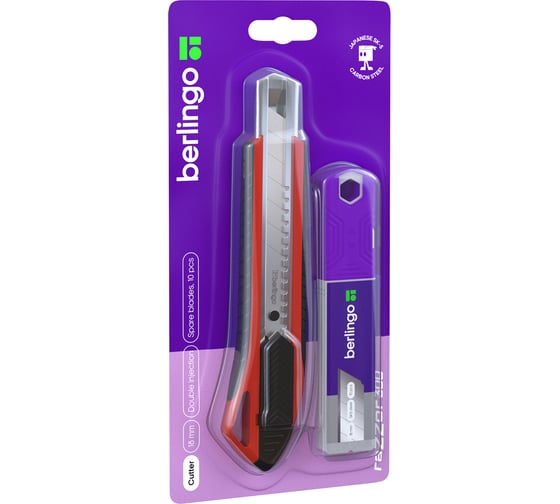 Канцелярский нож Berlingo серии Razzor 300 с автоматической системой фиксации лезвия auto-lock. Ширина лезвия: 18 мм. В комплекте 10 запасных лезвий из стали SK5. Корпус ножа красного цвета выполнен из высококачественного ABS пластика с применением технологии двойного литья (прорезиненные вставки). Имеет металлические направляющие. Индивидуальная упаковка – блистер с европодвесом. На оборотной стороне блистера есть перфорация для более удобного извлечения инструмента из упаковки.