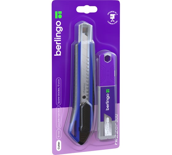 Канцелярский нож Berlingo razzor 300 18 мм, синий, сменные лезвия 10 шт., блистер BM4132_2c