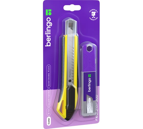 Канцелярский нож Berlingo razzor 300 18 мм, желтый, сменные лезвия 10 шт., блистер BM4132_2b