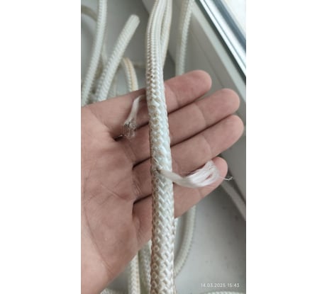 Фал был куплен для валки дерева, при размотке бухты на участке за 150 км от города было обнаружено брак оплётки, было очень печально, судя по оплавленным концам выступающих нитей из оплётки это брак производства я конечно не специалист но зацепить каким-нибудь шилом или саморезом так чтобы одна нить вышла сантиметров на 10 невозможно, кстати вот концы самой верёвки были не заплавлены обмотаны скотчем и отрезаны не заплавлены, что за производство такое где не могут себе позволить купить термоножницы, и нет контроля качества, как это получается оплётка вся торчит намотали на бухту и так сойдёт, ну на что они надеялись? Я понять не могу что человек разматывая не увидит это что ли,как это? Человек покупая изделия надеяться на то что она будет работать, в данном случае покупаю верёвку покупатель надеется что она не порвётся но видя что она вся лохматая надежда на качество изделия пропадает, и возникает вопрос как производитель относится к качеству выпускаемого изделия судя по лохматый оплётки никак, и пока я писал этот отзыв решил померить длину и длина оказалась 9 м 56 см!!! Мне в лом было мерить Но из-за брака решил для интереса померить, ну как так-то вообще позорище конечно производителю!!!