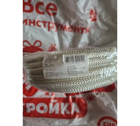 Фал капроновый от бренда truEnergy (артикул: 12220). Вес изделия составляет 0,74 кг, а длина — 20 м при диаметре 8 мм. Фал обладает разрывной нагрузкой 1000 кгс.