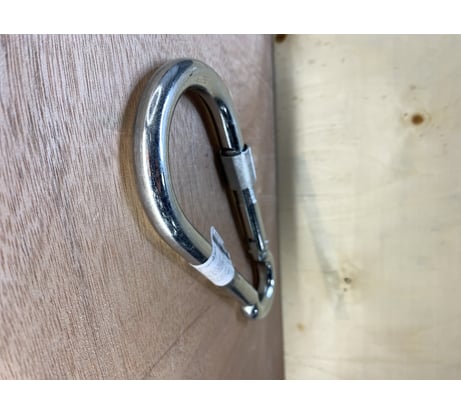 Хороший карабин бытового уровня. Сделан не очень аккуратно, на 4 из 5, ровный, без заусениц. Диаметр 13,5 мм. Максимальный размер раскрытия - 30мм. На профильную трубу 30*30 карабин надевается впритирку, обдирая краску. Использовал для удаленного от стены (около 50см) крепления/фиксации строительных лесов.