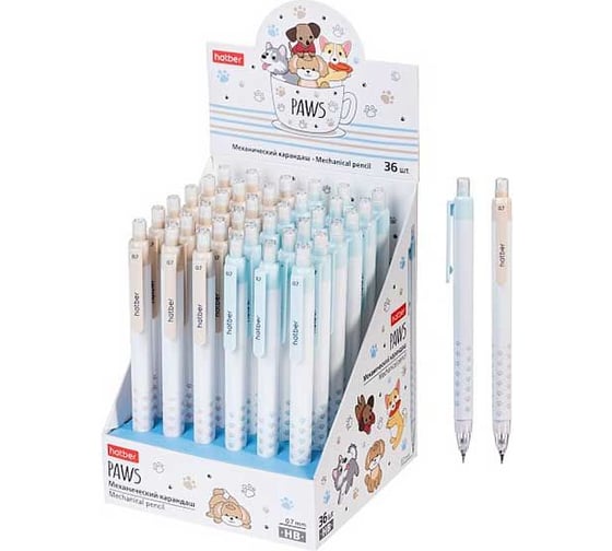 Карандаш механический Hatber 0,7мм-Paws/Лапки- с ластиком Ассорти 36ш 083712