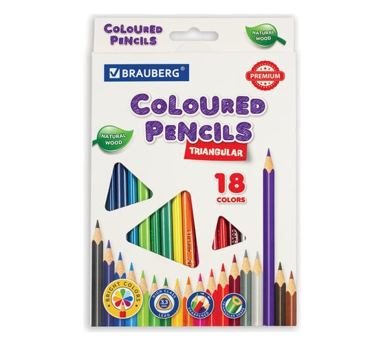 Карандаши цветные BRAUBERG трехгранны, 18 ярких цветов, Premium, комплект 880560