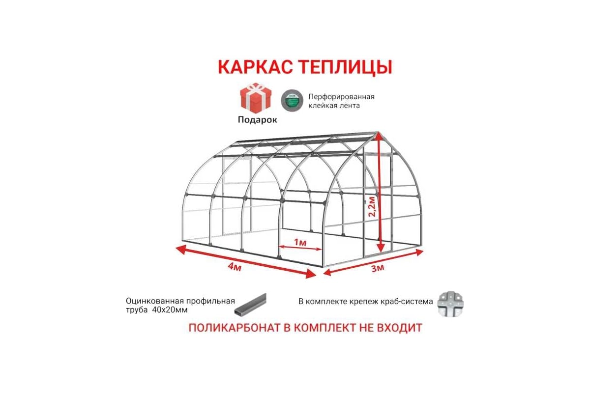 Каркас теплицы АКТИВАГРО.РФ Ударница урожайная» 40x20 мм 3x4 м шаг 1 м арт. 271