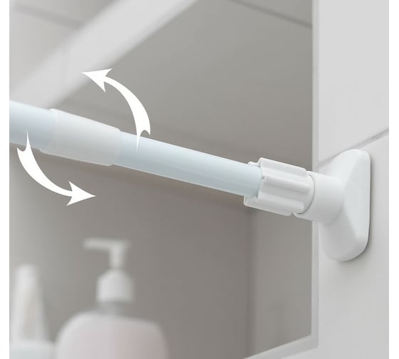Карниз для ванной Доляна усиленный, белый, 140-260 см 138924 увеличивается до 260 см. После того как второй край упрётся, следует сделать ещё 2–3 оборота для более надёжной фиксации. Затем просто навесить штору с крючками и распрямить её по всей длине.