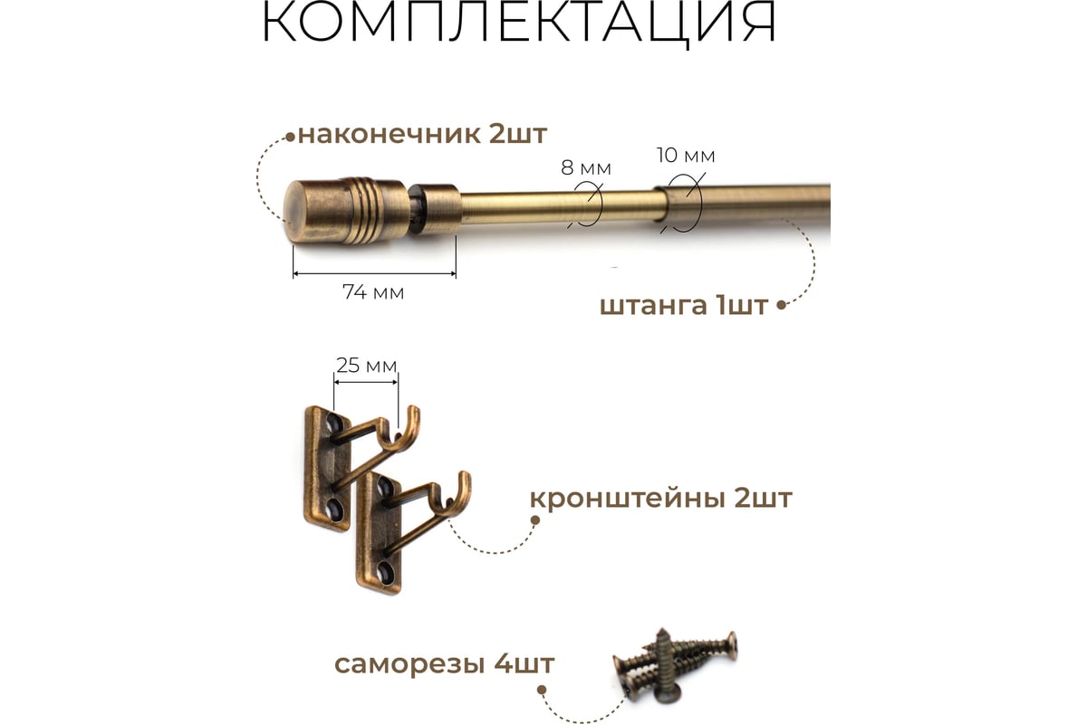 Однорядный карниз LM DECOR мини кафе 60-80 см, цилиндр, антик KF102060080AB
