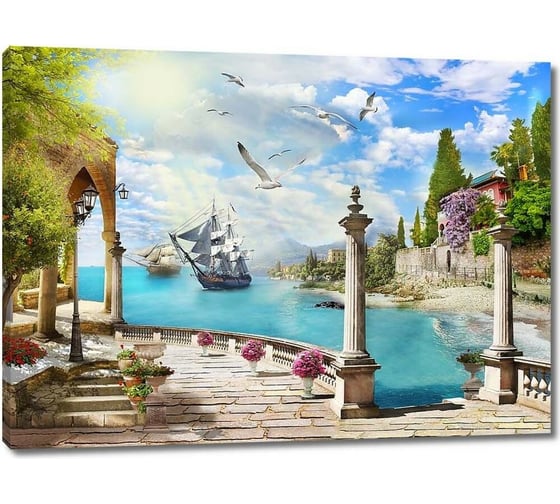 Картина ООО Первое ателье Парусники в бухте и набережная 60x44 см ps78684-3