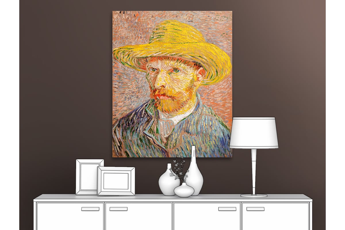 Картина-репродукция ООО Первое ателье Автопортрет в соломенной шляпе 48x60 см ps111290-2 изготавливается путем высококачественной фотопечати на холсте, который натягивается на деревянный профессиональный подрамник. Напечатана непахнущими интерьерными латексными красками, имеющими европейские сертификаты, которые позволяют использование в дошкольных и медицинских учреждениях. Холст тонкого плетения. Аккуратный задник картины.
