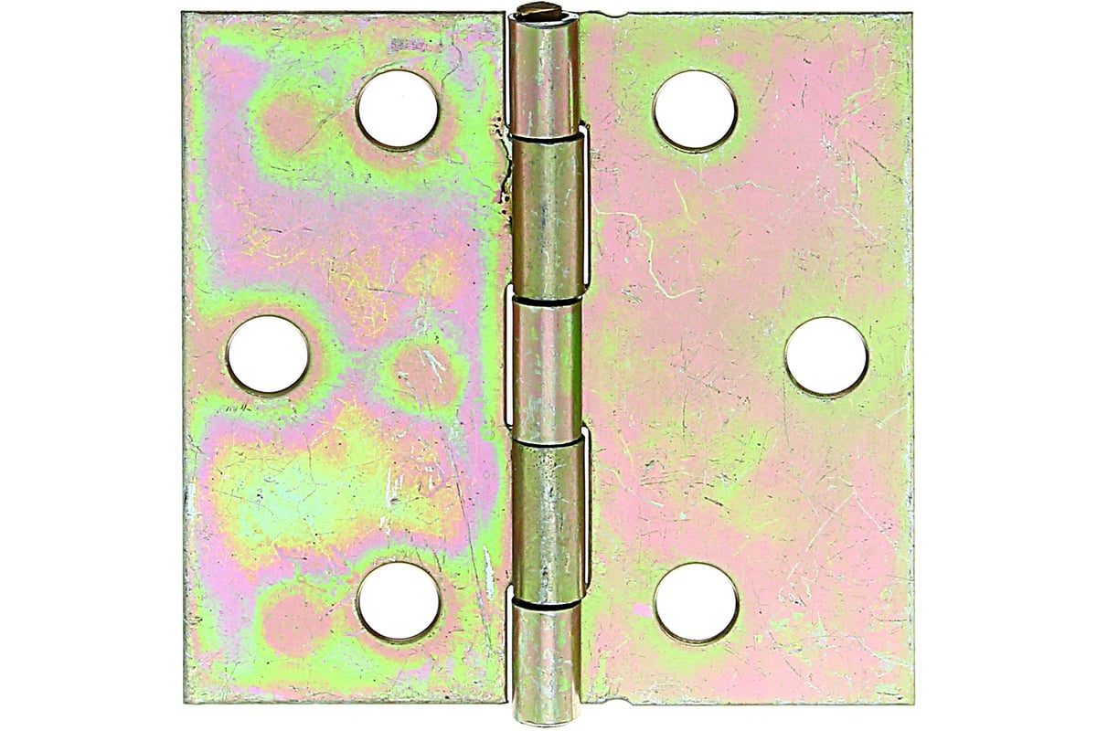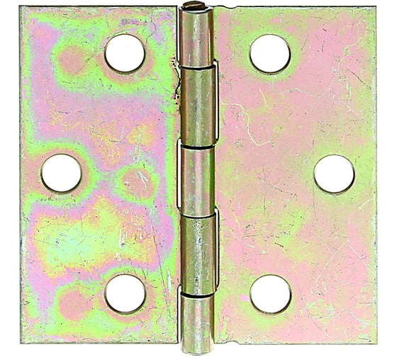 Петля карточная квадратная 51х51 мм, 2 шт, с заклепанным штифтом из нержавеющей стали. Изготовлена из оцинкованной стали толщиной 0,75 мм. Имеет 6 монтажных раззенкованных отверстий диаметром 4,2 мм.