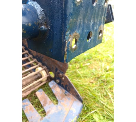 Слабое место - это малая толщина металла экрана в месте соединения со скобой. Соединительная скоба выгибает, вытягивает металл в месте соединения двух болтов экрана со скобой, при этом затяжка болтов качественная. Соединительная скоба имеет скругление на поверхности прилегания (слегка "горбатая" шла в комплекте с картофеле копалкой). В результате конструкция "ДЫШИТ" в соединении экрана со скобой. Мало пятно контакта. Нужна большая площадь скобы или более толстый металл экрана, хотя бы 5 мм. В результате работы происходит изгиб экрана, пластическая деформация преобладает над упругой. Порвало металл экрана (3 см по углам) с двух сторон в положении на нижнем ряду отверстий экрана. В результате изменился угол наклона копалки, поднялись колёса и остановился транспортёр. Необходимо усилить толщину металла экрана. Земля предварительно была обработана от сорняков и достаточно сухая. Устраняется в домашних условиях наклакдой уголков 5мм на экран со сверлением отверстий под скобу. Первые впечатления отличные. Все соединения подтягивали. Обеспечивали достаточный провис транспортёра. Выкопали тонну картофеля. Эксплуатация картофеле копалки продолжается.