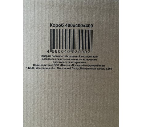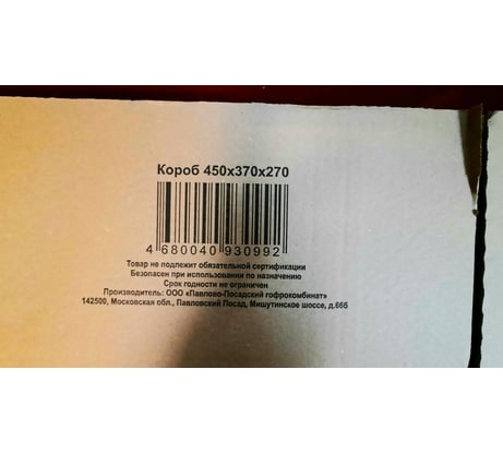 Картонная коробка ООО Павлово-Посадский Гофрокомбинат 450x370x270 мм, т-22 с мак печатью 141919