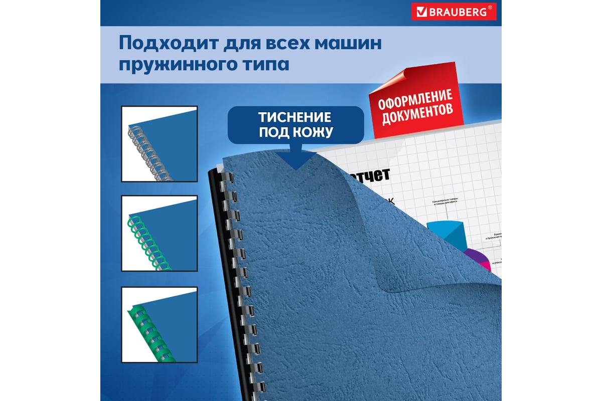 Обложки для переплета BRAUBERG придадут документам эстетичный внешний вид и защитят от повреждений.