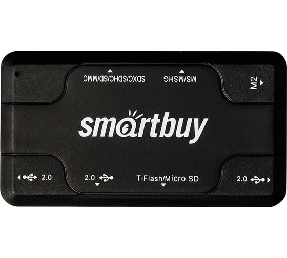 Картридер + Хаб SMARTBUY 750, USB 2.0 3 порта+SD/microSD/MS/M2 Combo, черный () SBRH-750-K
