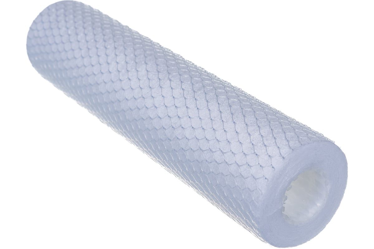 Картридж ПФМ 20/10 - 10SL изготовлен из вспененного полипропилена. Имеет градиентную пористость: диаметр поры уменьшается при движении воды внутрь картриджа, благодаря чему работает весь объем фильтрующего материала.