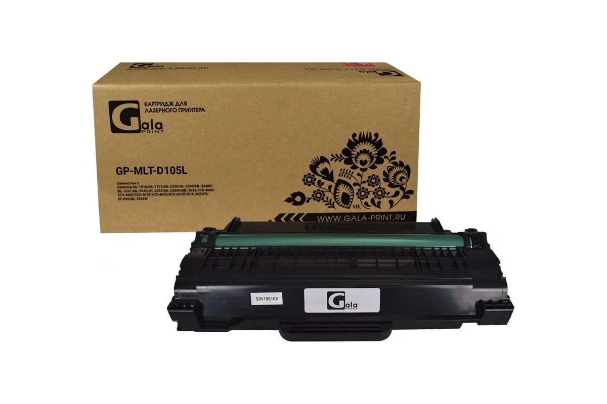 Картридж GalaPrint GP_MLT-D105L предназначен для Samsung ML-1910/ML-1915/ML-2520/ML-2540/ML-2540R/ML-2541/ML-2545/ML-2580/ML-2580N/ML-2645/SCX-4600/SCX-4605/SCX-4610/SCX-4623/SCX-4623F/SCX-4623FN/SF-650/ML-2525W.