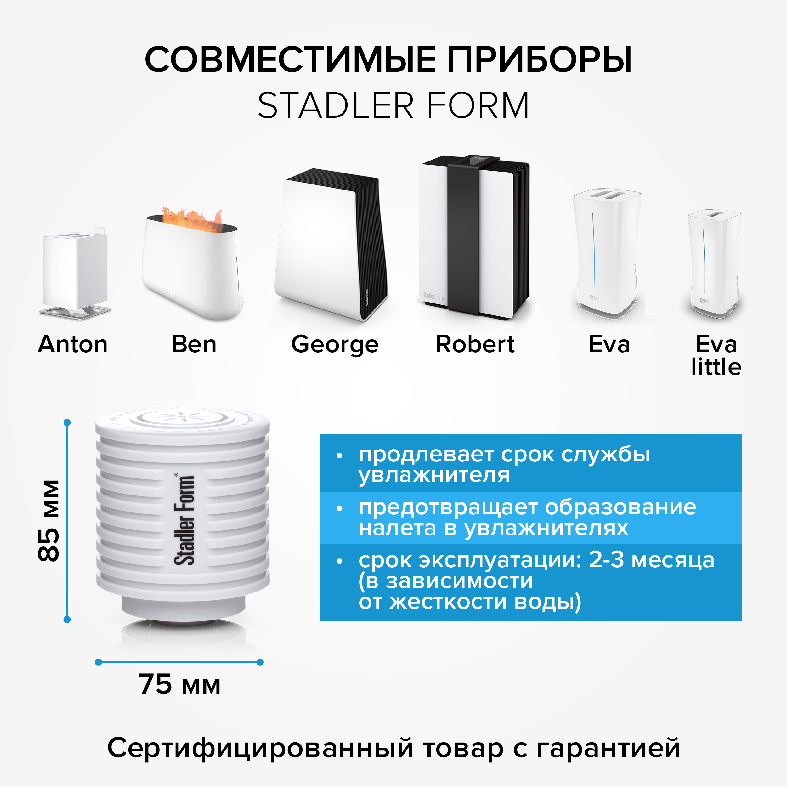 Можно использовать в ультразвуковых увлажнителяхStadler Form Anton, Poseidon, Eva, Eva little, Robert, Jack, George, Ben