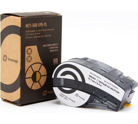 Картридж Альтер M21-500-595-YL с лентой из винила 12,7 мм х 6,4 м, черный на желтом, для BRADY M210 AL211-500595YL