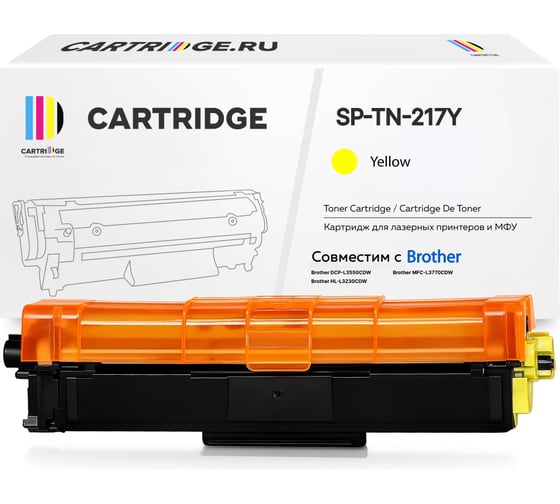 Тип: совместимый. Ресурс: 2 300 страниц формата А4 при 5% заполнении страницы. Цвет: Желтый. Совместим с принтерами: Brother DCP-L3550CDW , Brother HL-L3230CDW, Brother MFC-L3770CDW. Вид товара: Картридж лазерный Аналог: Brother TN-217Y